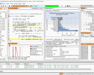 Profiling functions based on code trace data from On-chip Emulators (MCDS, miniMCDS and SPU) including Aurora, Nexus, ETM, ETB, ITM, PTM, FTM trace and also IP snooping or simulator output