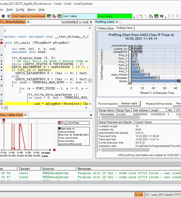 Improved Graphical window with Hardware Trace (MCDS, miniMCDS, NEXUS, and ETM) Signal Chart, Graphical display of IP and function traces